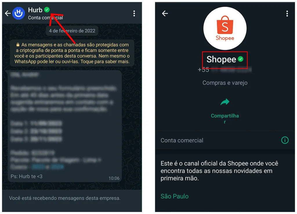 É muito comum receber códigos de verificação em dois fatores ou ofertas promocionais pelo WhatsApp a partir dessas contas. Além disso, não é necessário adicionar o número à sua agenda para ver o nome de um contato com o selo.