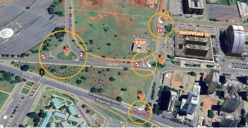 - Reforço: O cruzamento da via N2 com a W3 Norte (perto do Brasília Shopping) será fechado para facilitar a dispersão.